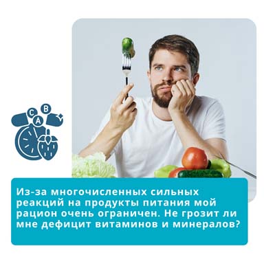 14. Из-за многочисленных сильных реакций на продукты питания мой рацион очень ограничен. Не грозит ли мне дефицит витаминов и минералов?