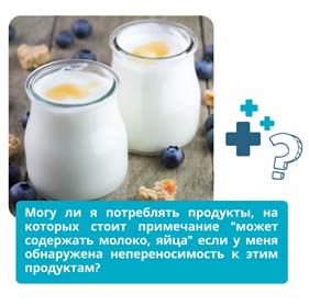 2. Могу ли я потреблять продукты, на которых стоит примечание “может содержать следы (молоко, яйца...)”, если у меня обнаружена непереносимость к этим продуктам?
