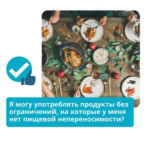- Пищевые ограничения могут быть не только из-за пищевой непереносимости, но и при аллергии на продукты питания, при перекрестных реакциях на ингаляционные аллергены и при других состояниях здоровья (целиакия, непереносимость лактозы, проблемы кишечного тракта и др.). Убедитесь, что у вас нет пищевых ограничений по поводу других состояний здоровья.