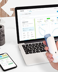 AioCare - це професійна система для моніторингу та лікування захворювань легень, що складається з портативного спірометра, підключеного до додатка для смартфона, і онлайн-панелі для доступу до результатів. Пристрій дозволяє проводити повний спірометричний тест в кабінеті лікаря, в тому числі тест з бронхіальним навантаженням.