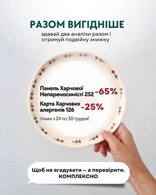 - Панель Харчової Непереносимісті 252 + Карта Харчових алергенів 126: ДОДАТКОВА знижка 25%